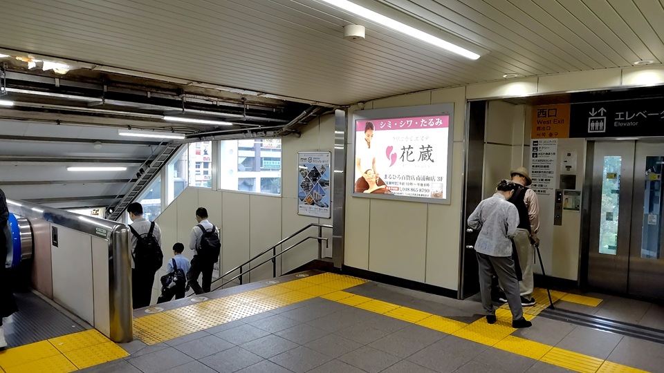 突きあたりまで来たら、階段を下りて地上1階に移動します。