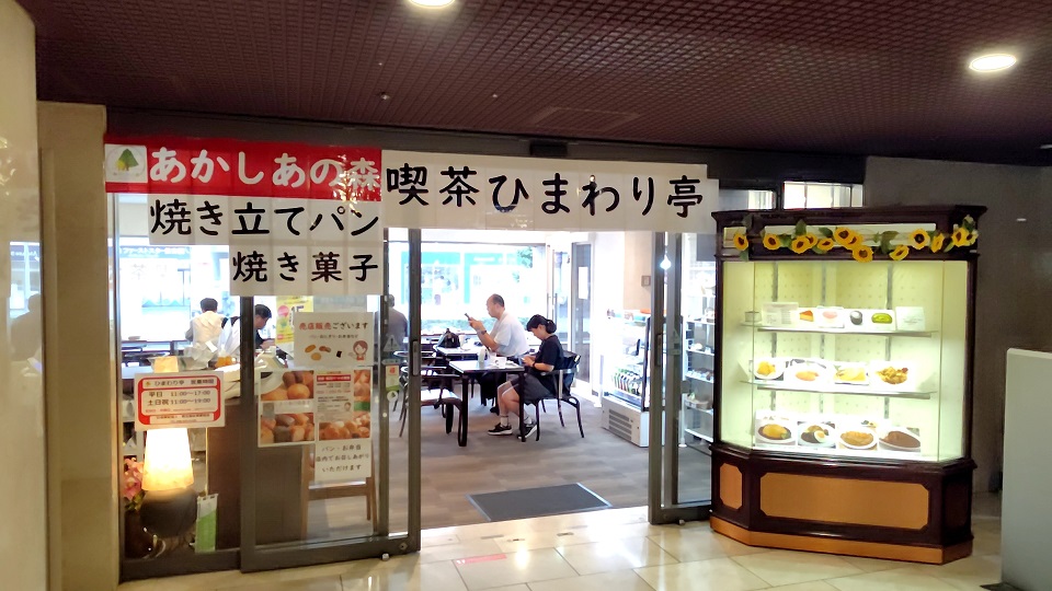 喫茶「ひまわり亭」は、建物1階の東側玄関を入って左側にあります。1,000円以下で定食等が注文できるリーズナブルなお店で、外側から直接利用することができます。