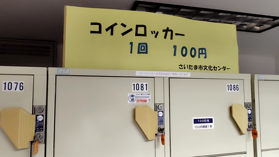 コインロッカーは小型サイズのみで、使用料は1回100円です。