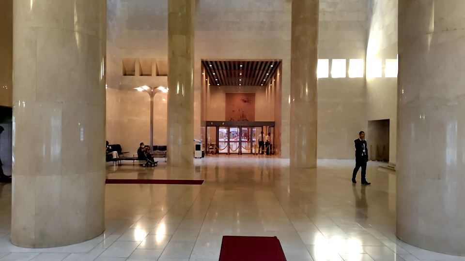 会場の出入口は建物の東側と南側の2カ所あり、それぞれ1階のセンターホールに続いています。アクセスルートで到着した場合、東側の出入口が正面にあります。