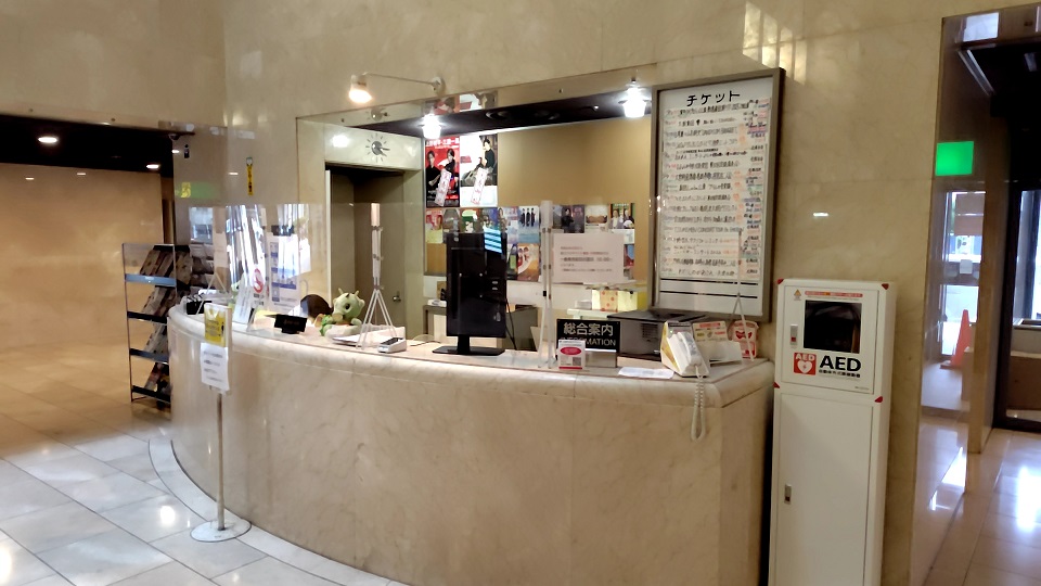 南側出入口のすぐ右側に総合案内のカウンターがあります。
