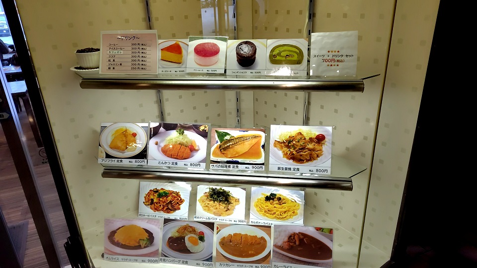 メニューは定食やパスタ・カレーのほか、ケーキ等のドリンクセットを取り扱っています。
