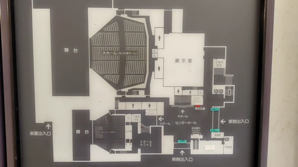 南側出入口から入った場合、正面奥に大ホール(さくら草ホール)のエントランスがあります。
