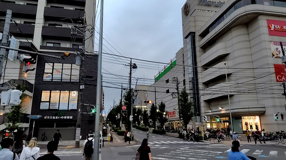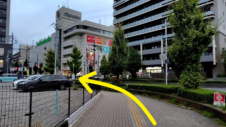 はじめにローソンとスーパーのヤオコーの間を通過します。
