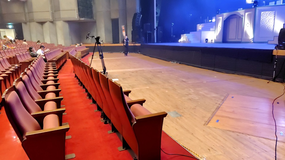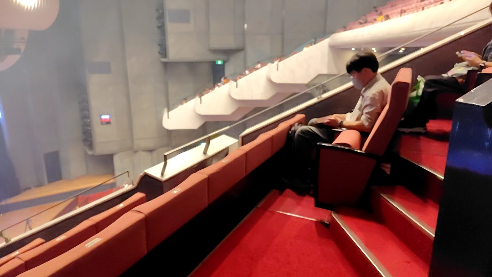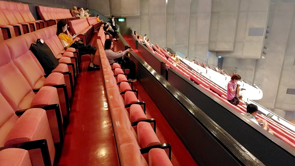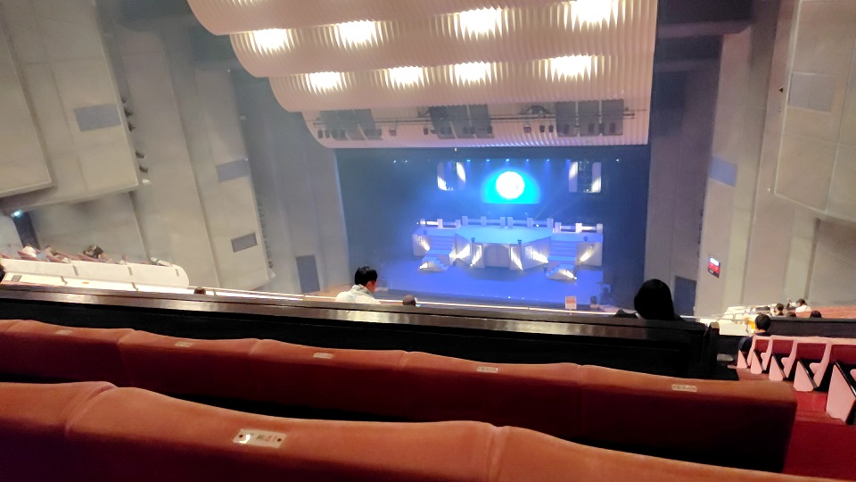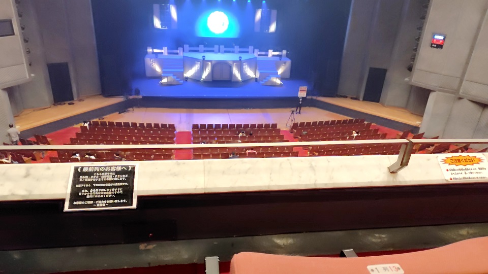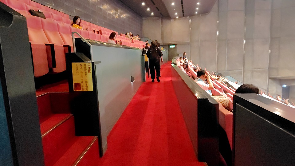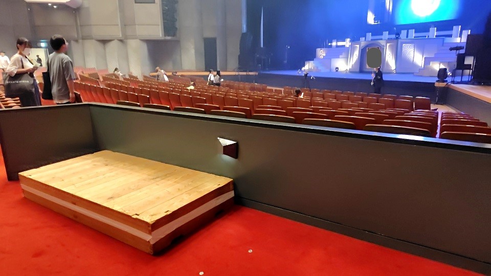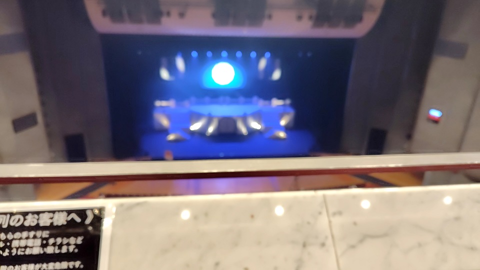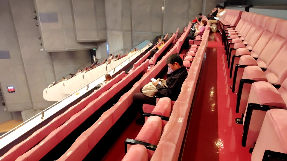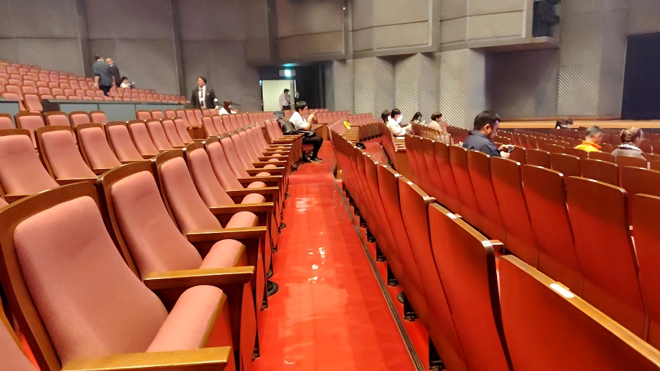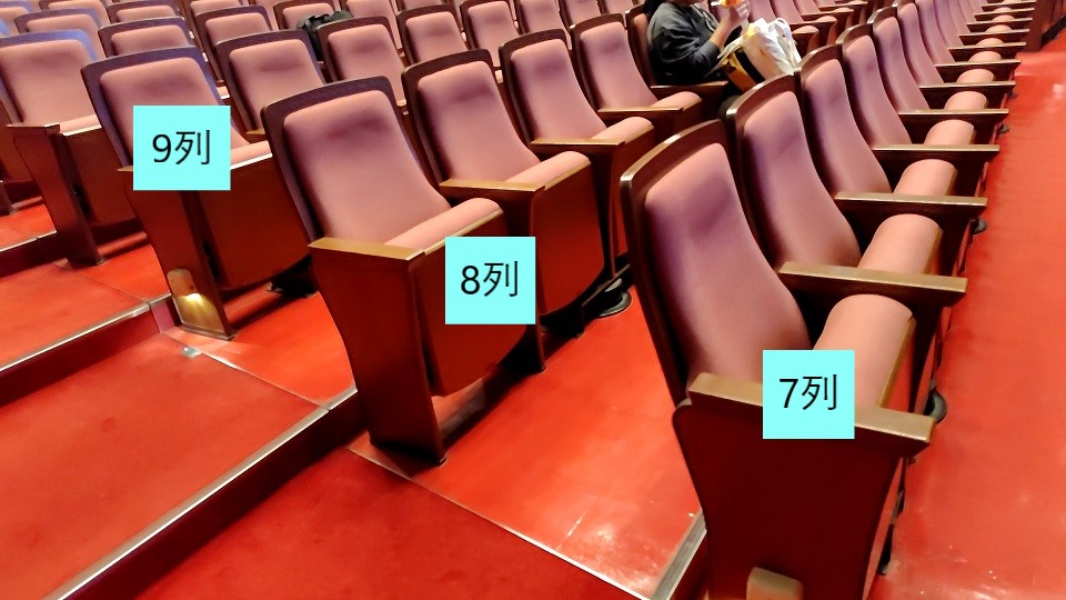 この日の公演はオーケストラピットとなる4列までの座席(移動席)が撤去され、5列は使用せずに6列が実質の最前列になっていました。