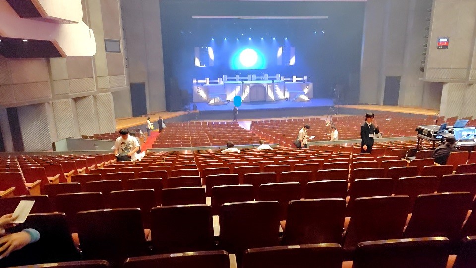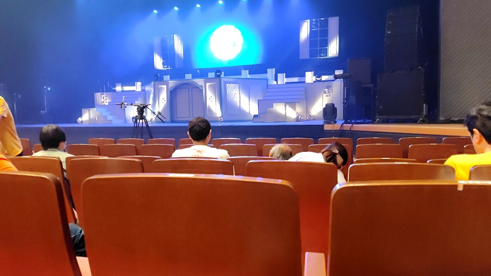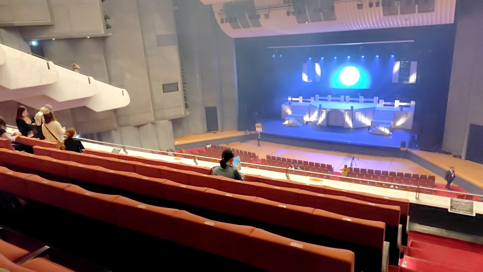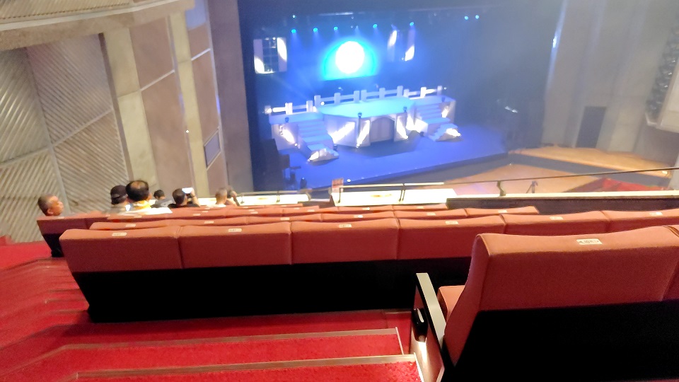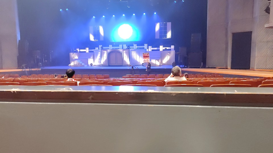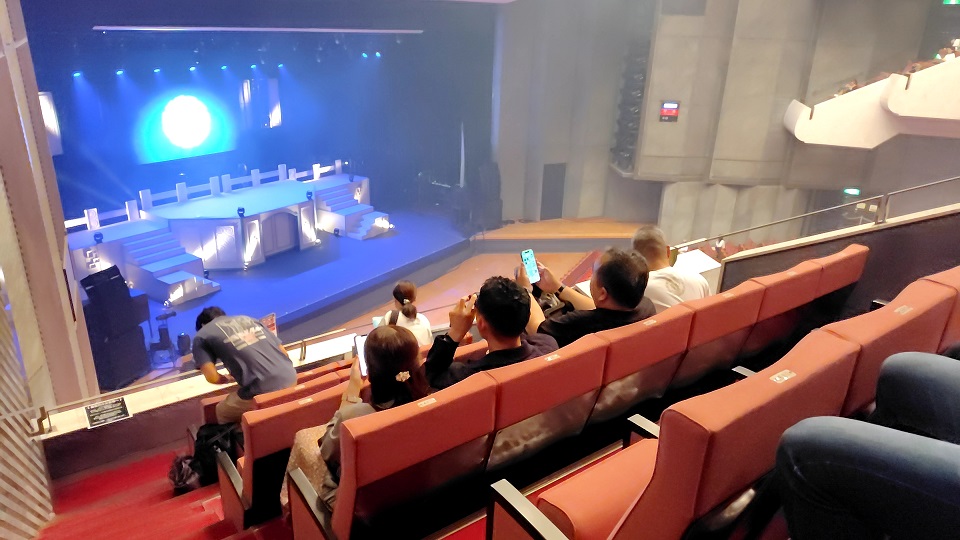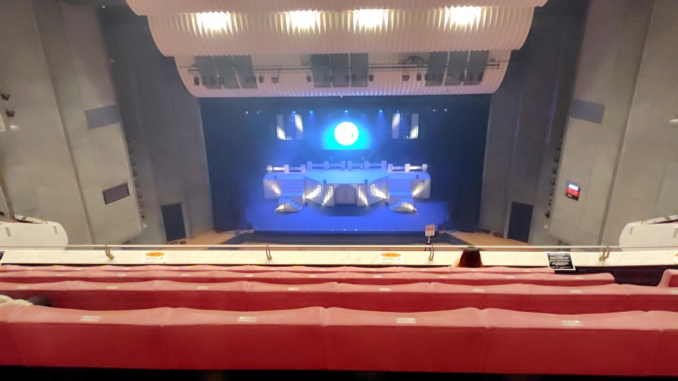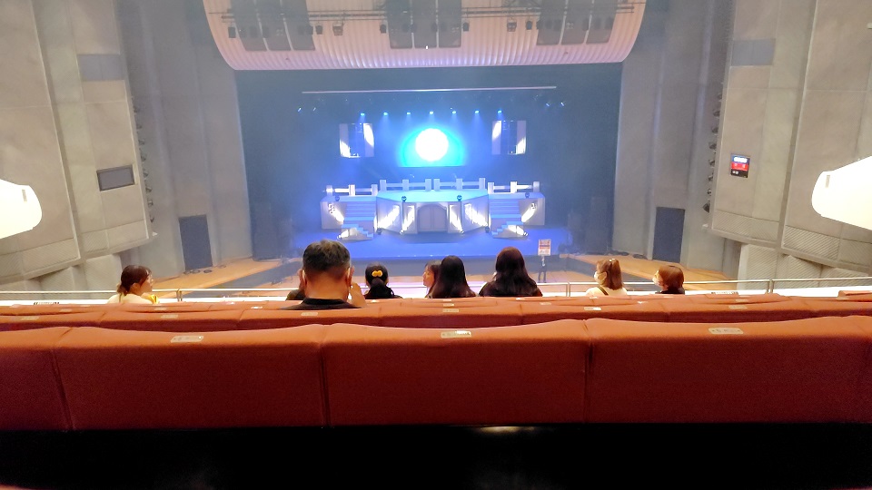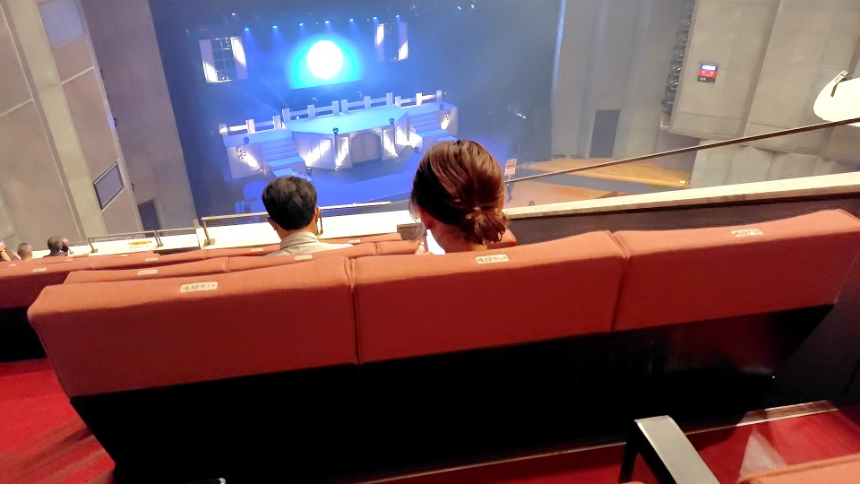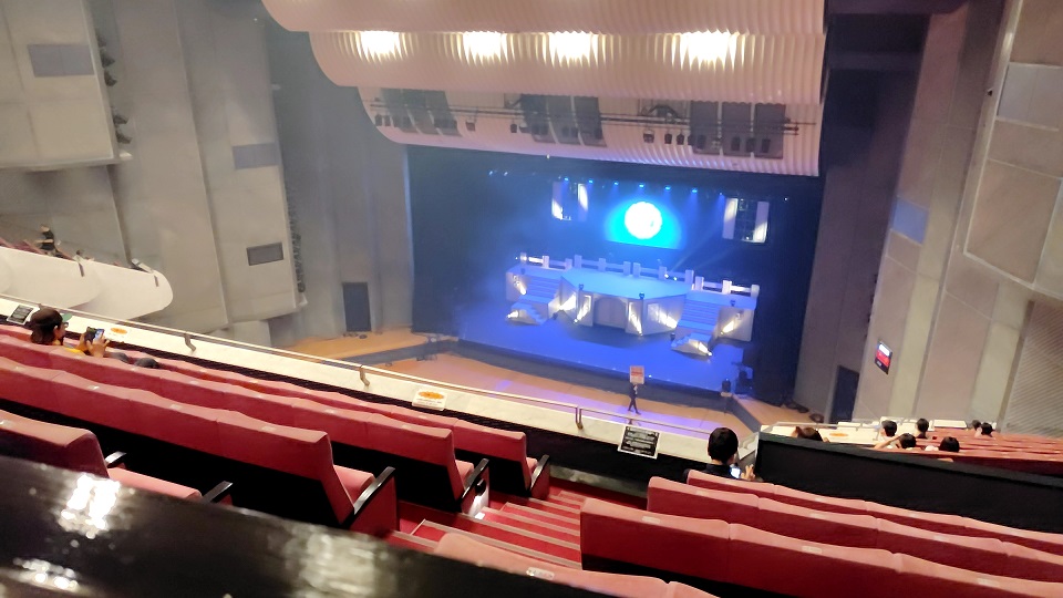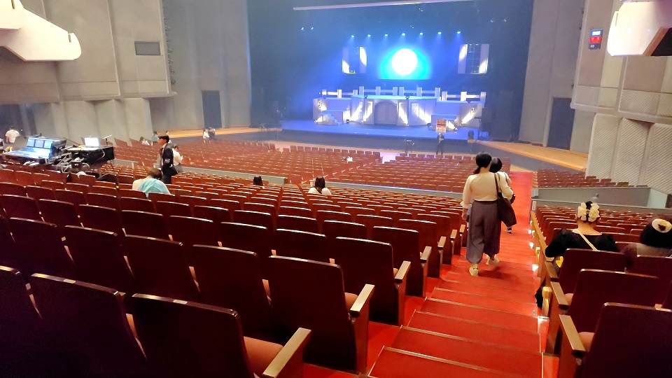 この日の公演はオーケストラピットとなる4列までの座席(移動席)が撤去され、5列は使用せずに6列が実質の最前列になっていました。