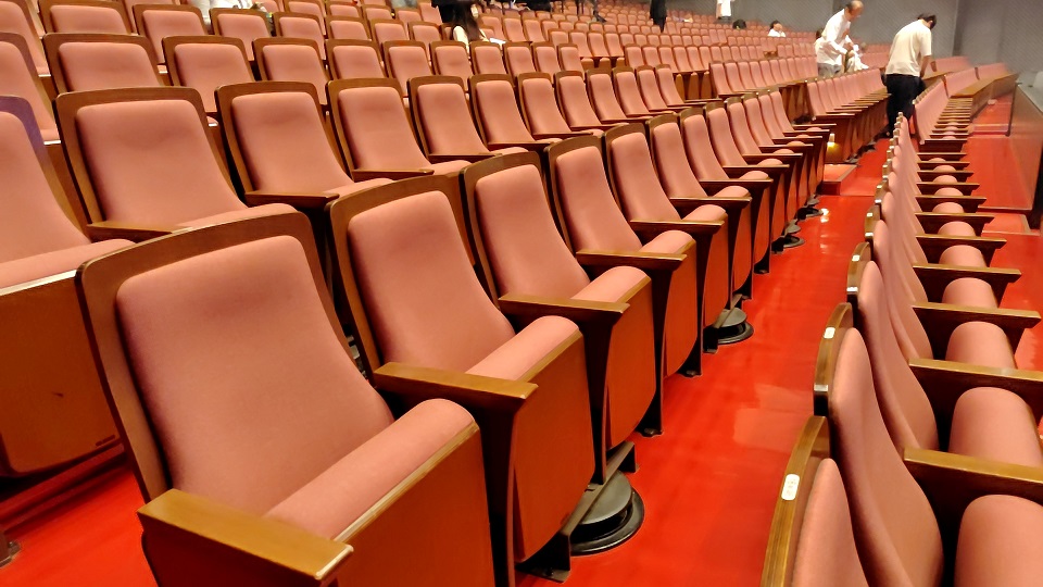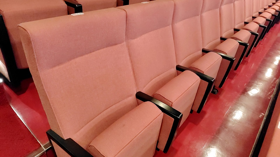 2階席と3階席は他の会場と同じく背もたれの部分が長いハイバック仕様ですが、他と異なり木製の基礎部分ではなく、クッション部分が基礎部分をカバーする形で包み込んでいるのが特徴で、形状も腰・肩・首に当たる部分で区切られているデザインになっています。