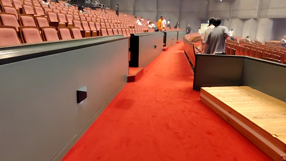 通路後方最前の16列は、前に壁が設置されており、通路との段差もあって、見やすい視界が確保されています。