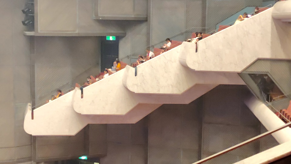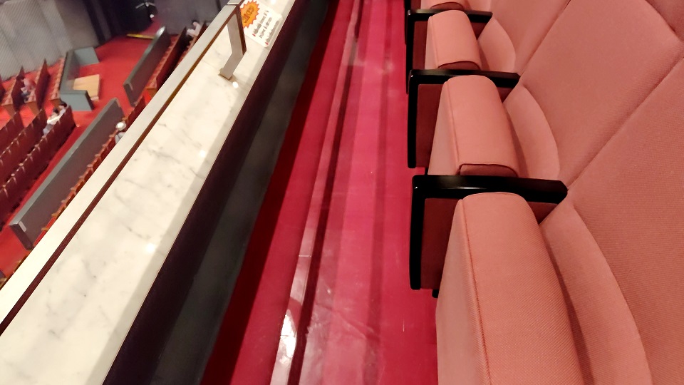 座席間の傾斜は1階席・2階席よりも強めで、上から俯瞰で見下ろす感じになります。