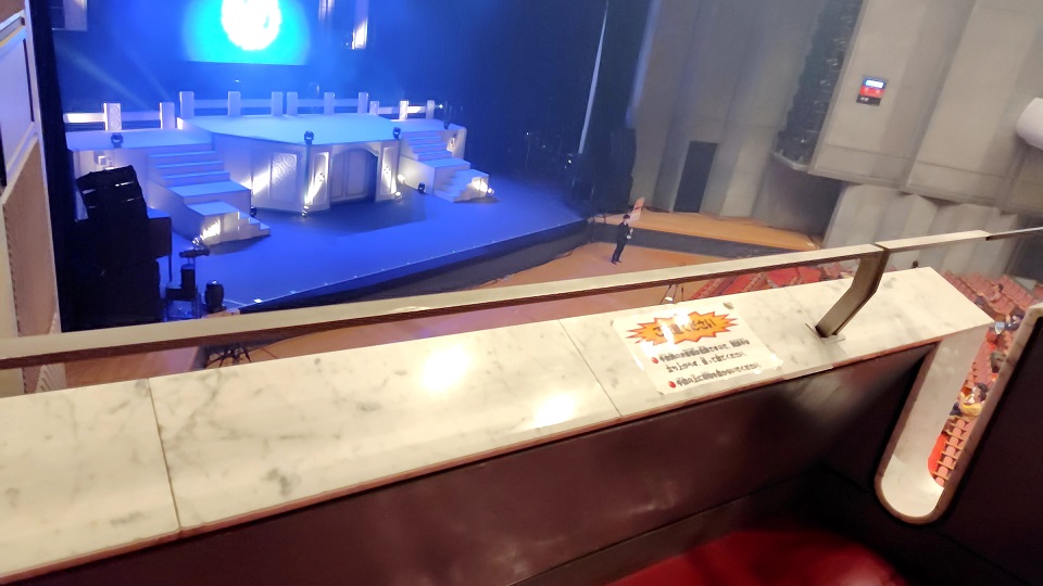 2階席の総客席数は330席で、ステージ正面のスタンド部分と、左右にせり出した部分のバルコニー席に分かれています。