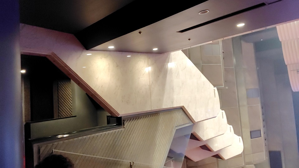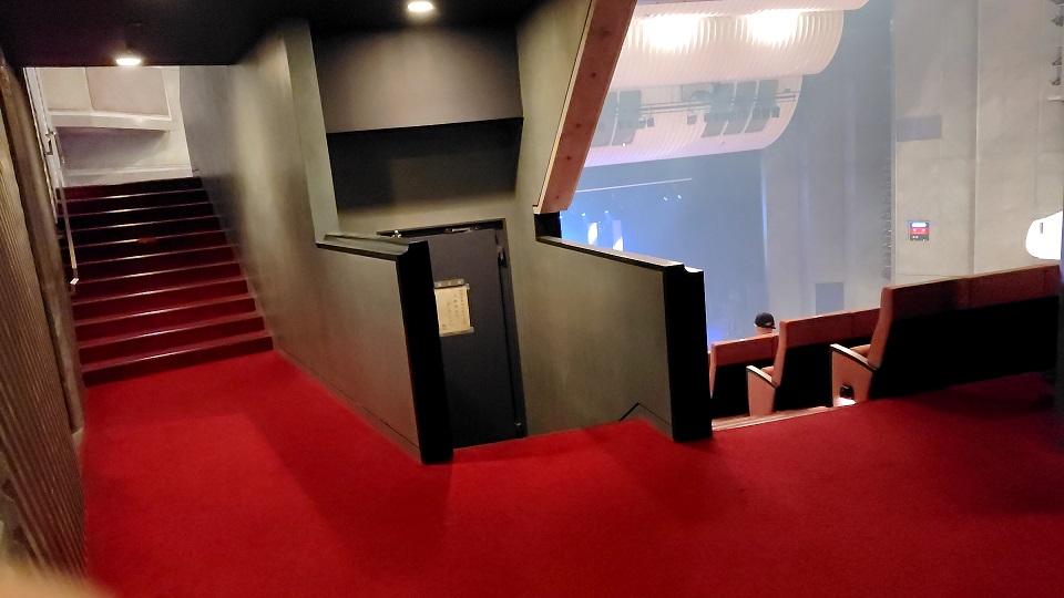 3階席の最前列付近から1段下がった所が2階バルコニー席の13列になりますが、3階席から直接移動することはできず、2階スタンド席横の階段を利用して移動します。
