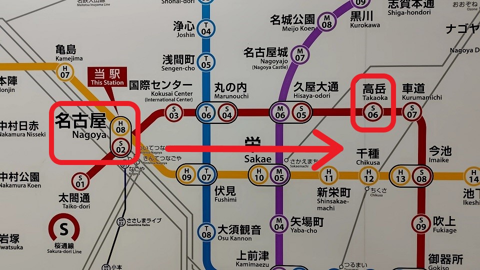 もう1つの最寄り駅である桜通線高岳駅は、名古屋駅から4駅目で、所要時間は同じく約7分です。