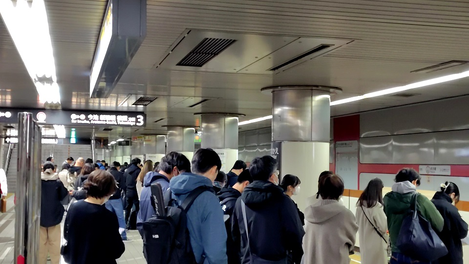 名古屋-栄間は中部地区で最も混み合う路線で、常に行列ができています。
