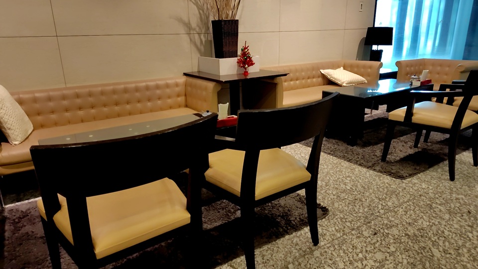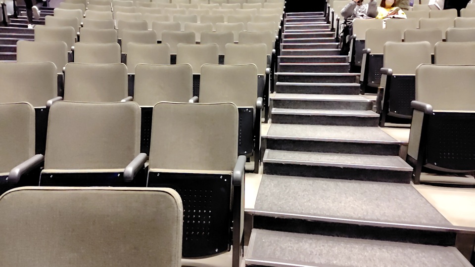 通路前方の5列まではほぼフラットな傾斜、通路後方の6列以降に段差が付き、適度な傾斜が設けられています。