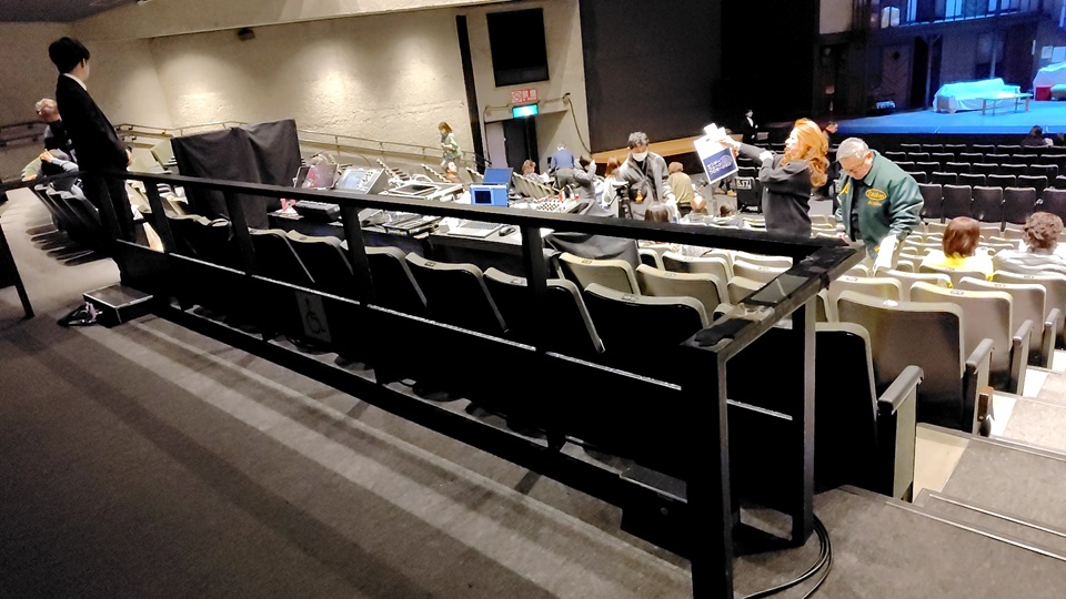 2階席の総客席数は150席で、1列から6列まであります。座席の前後は2段分の傾斜が付けられ高さがあり、ステージを見下ろす形になります。