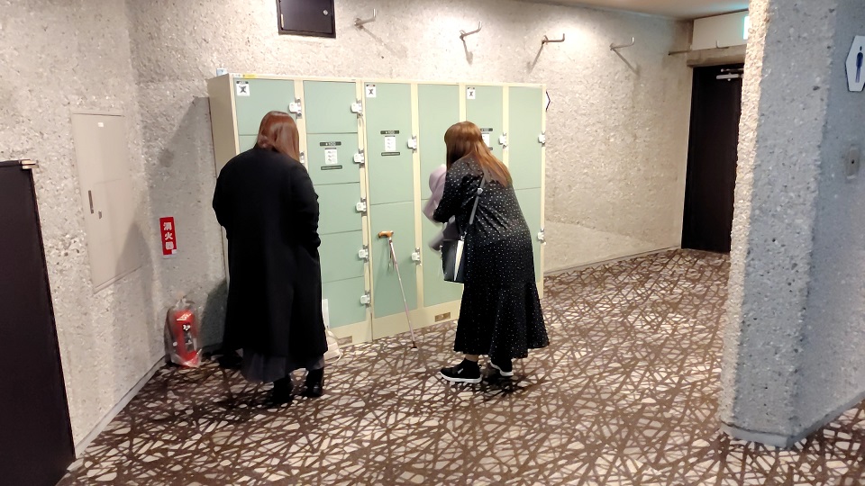 会場のエントランスホールは、西側と南側に2カ所あり、それぞれ休憩スペースとトイレが設置されています。