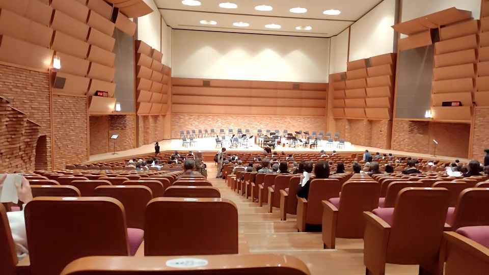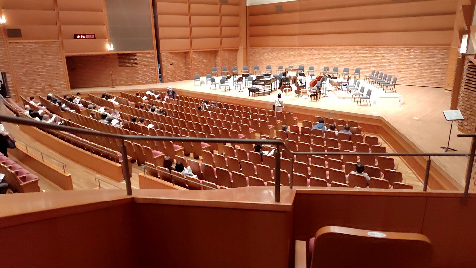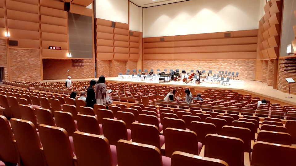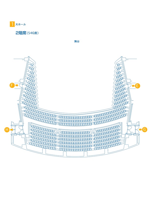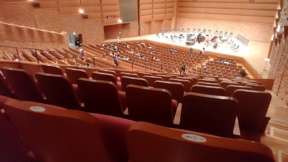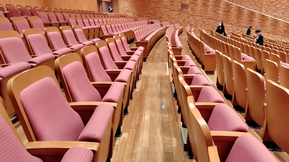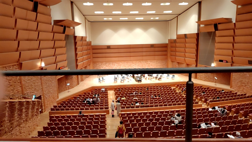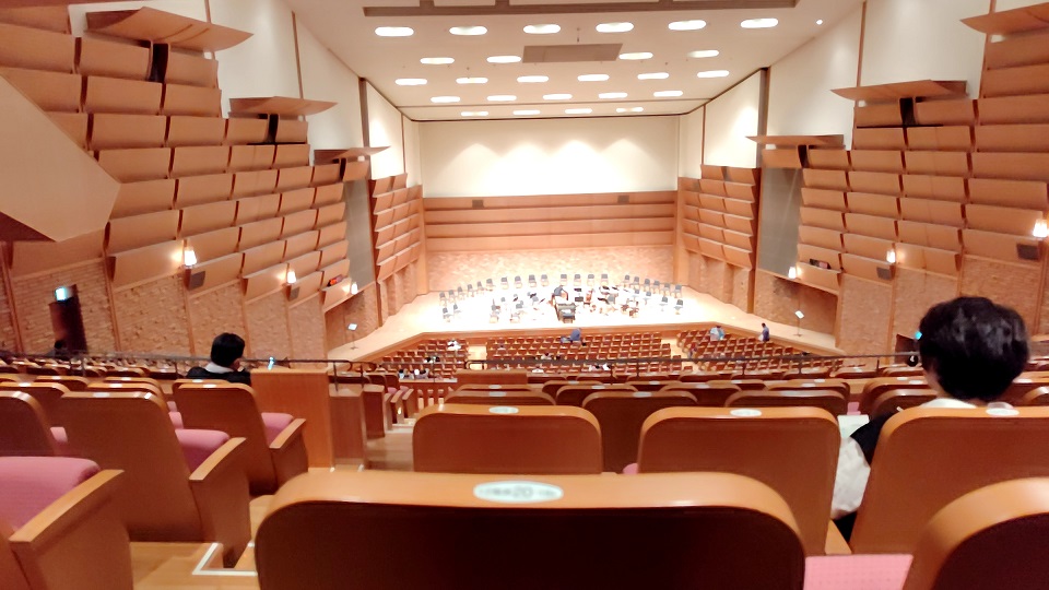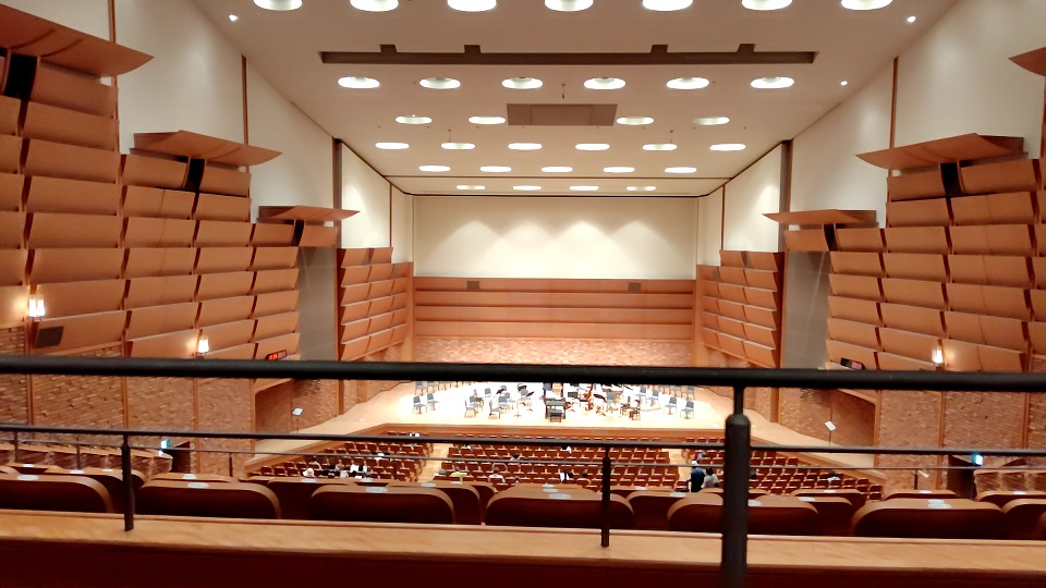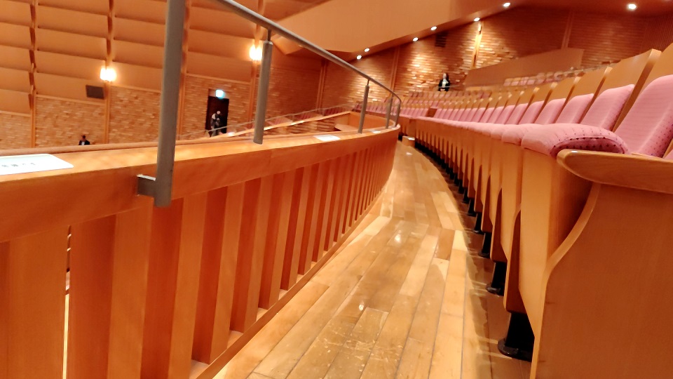 大ホールの総客席数はちょうど2,000席で、1階席から3階席までの三層構造です。2階席と3階席にはスタンド背kのほか、一部壁際に伸びるバルコニー席も設置されています。
