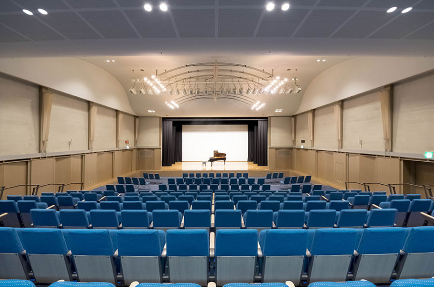 床は昇降式で、フラットな平土間形式から客席を備えた小劇場タイプの舞台形式まで、空間をアレンジすることで、ピアノの発表会や演劇・人形劇、ライブ等の小規模の催しや展示会・パーティーなど、多彩な用途に利用されています。