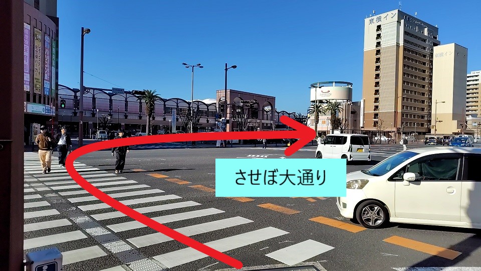 JR在来線や高速バスで佐世保駅前に着けば、会場までは徒歩でわずか約3分の道のりです。JR佐世保駅からは、東口を出て、「アルカスプロムナード」を進みます。佐世保バスセンターからは、すぐ前を走る「させぼ大通り」を進んで会場に向かいましょう。