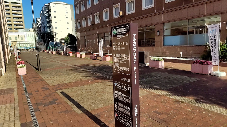 アルカスSASEBOはJR佐世保駅及び佐世保バスセンターからすぐの場所(徒歩約3分)にあるので、アクセスは旅行ガイド等に掲載されている「佐世保」への案内をそのまま適用することができます。
