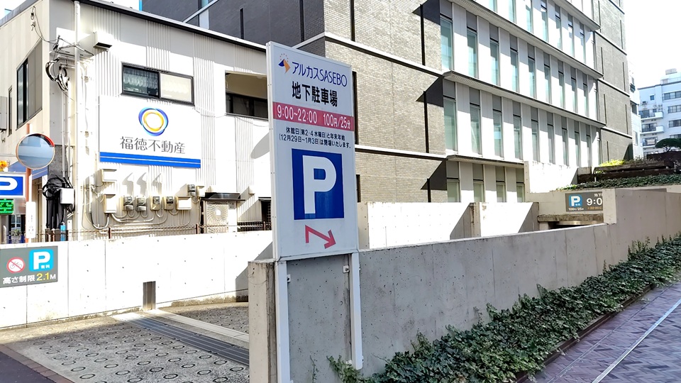 会場専用の駐車場は地下にあり、収容台数は約50台と少ないため、すぐ満車になります。営業時間は9時から22時で、料金は25分につき100円がかかります。