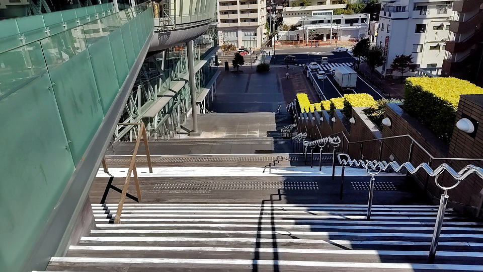 2階席の総客席数は546席で、1列から21列まであります。このうち、ステージ正面に正対するスタンド席部分の最前列は13列で、実質8列の構成になっており、途中15列と16列の間に通路が設置されています。