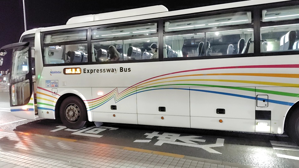 福岡空港から直接向かう場合、空港経由便が「国際線ターミナル」で停まるので、いったん国内線・国際線連絡バス(無料)を利用し、その後に高速バスに乗車する流れになります。