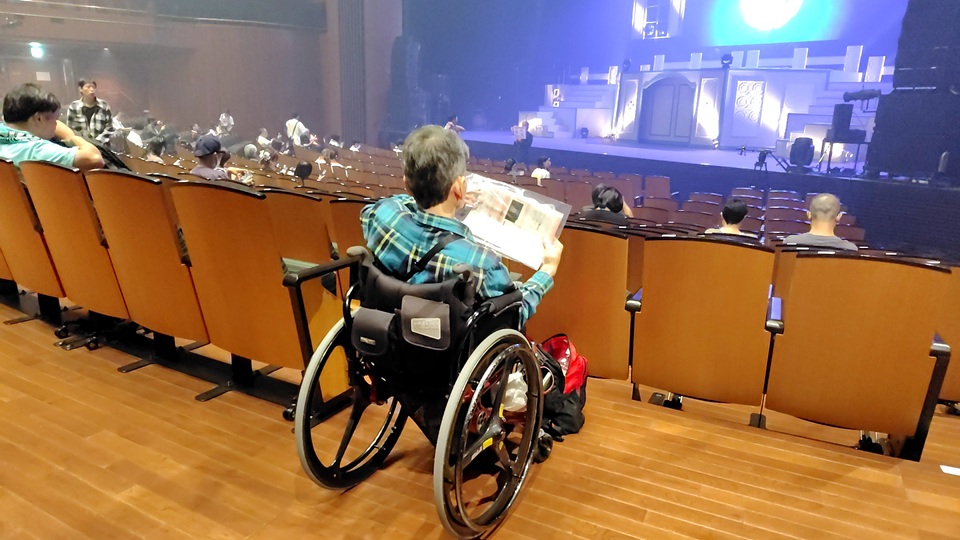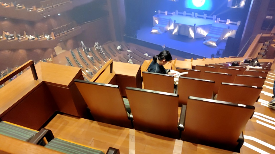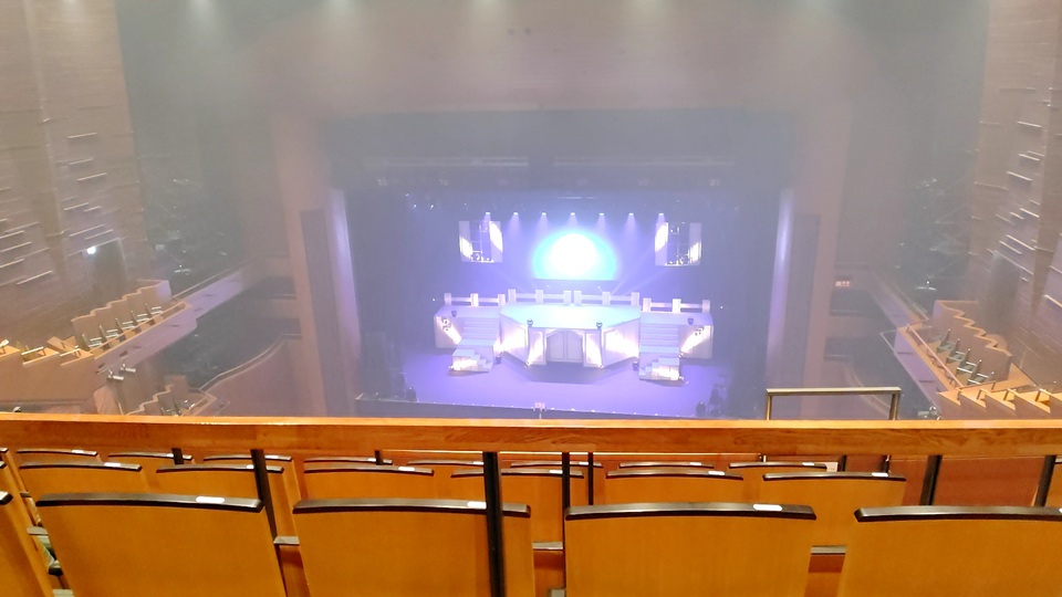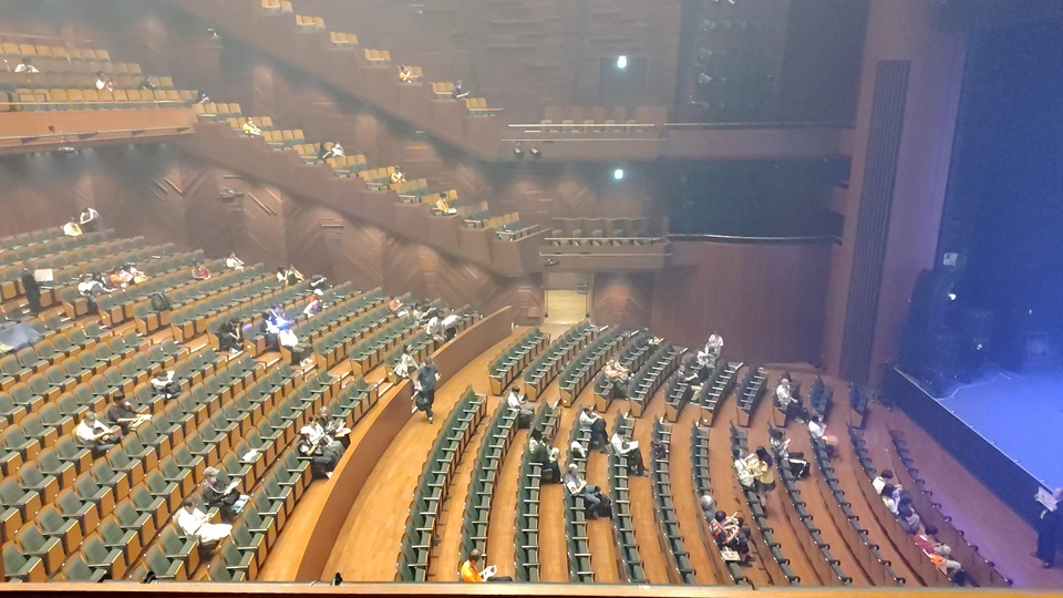 上の写真はオーケストラピットなしのバージョンです。この公演では1列と中央以外の2列を取り外し、3列目から使用していました。