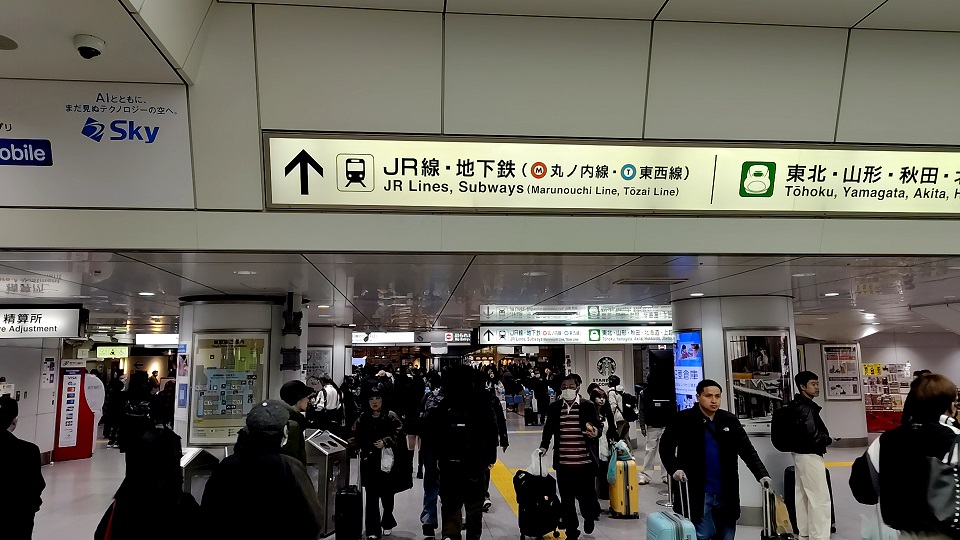 今回は新幹線で東京駅に着いた、という前提で、東京メトロ丸ノ内線東京駅から霞ヶ関駅経由で日比谷線に乗り換えるルートと、隣りの有楽町駅から日比谷駅経由でに乗り換えるルートの2種類で紹介します。