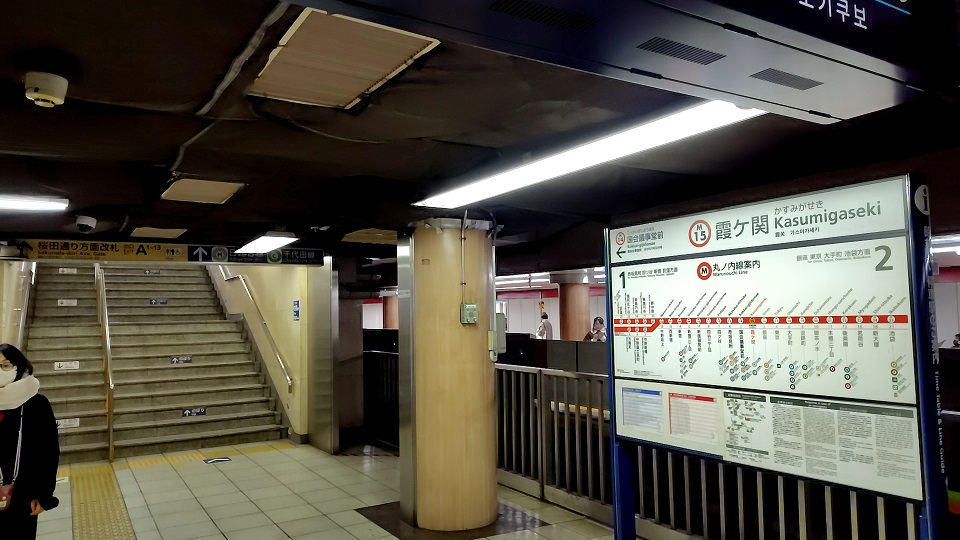 丸ノ内線霞ヶ関駅から日比谷線への乗り換えルート