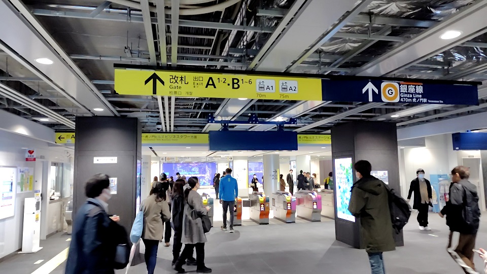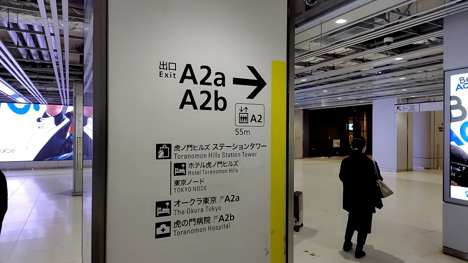 まずは銀座線虎ノ門ヒルズ駅に着いてから会場までの徒歩ルートの紹介です。会場最寄りの出口は「A2a」出口で、底から徒歩約2分で到着します。