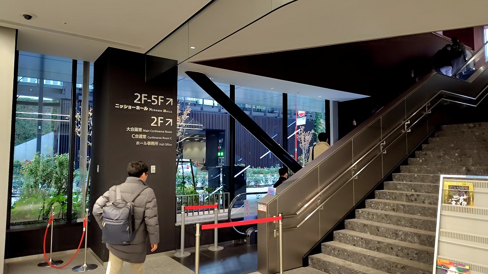ホールは建物の2階から5階に位置しており、1階のホール入口から階段またはエスカレーターで上がっていく流れになります。