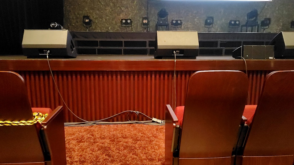 2階席の両サイドから伸びるバルコニー席は、今回使用されませんでしたが、ステージと垂直に左右5席ずつ計9席配置されています。ステージに近い3席と後方の2席で高低差が付けられています。