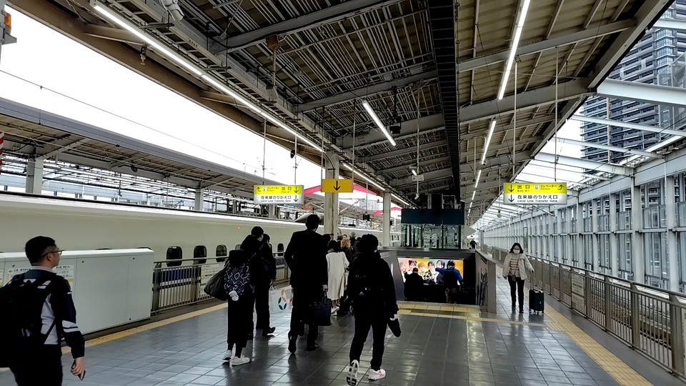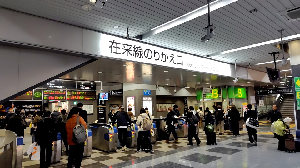 まずは新幹線岡山駅のホームから、在来線への乗り継ぎ改札を目指しましょう。
