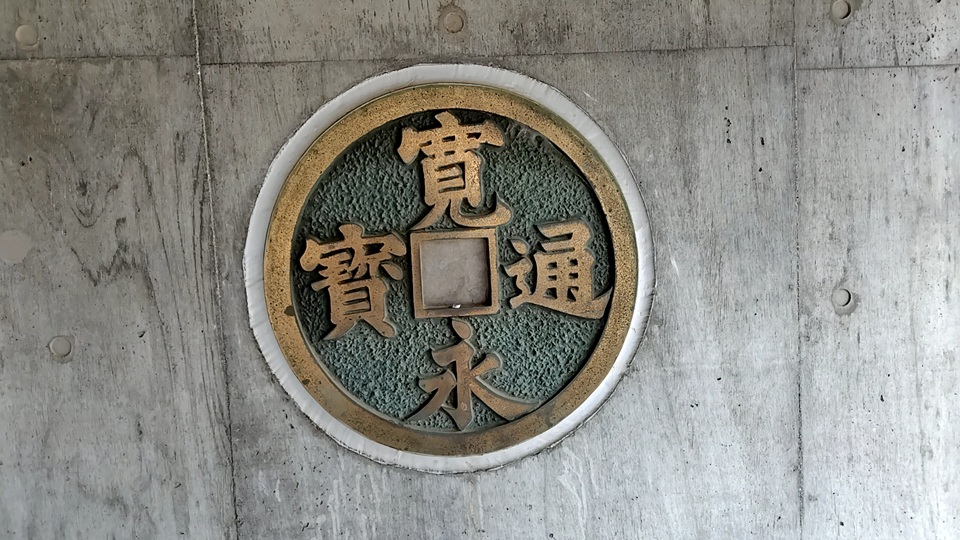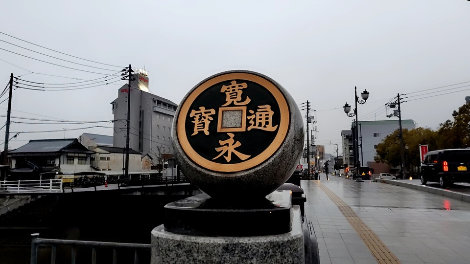 後ほど紹介するサンドアートの「銭形砂絵」をはじめ、街中いたるところで「寛永通宝」のマークを見かけます。