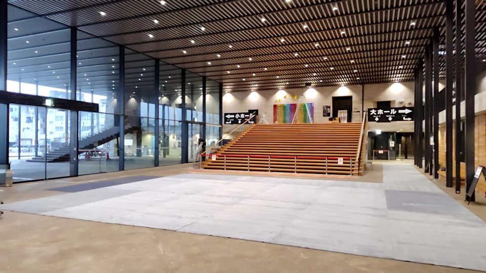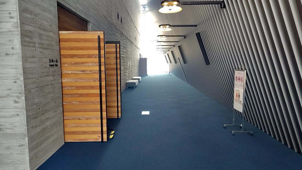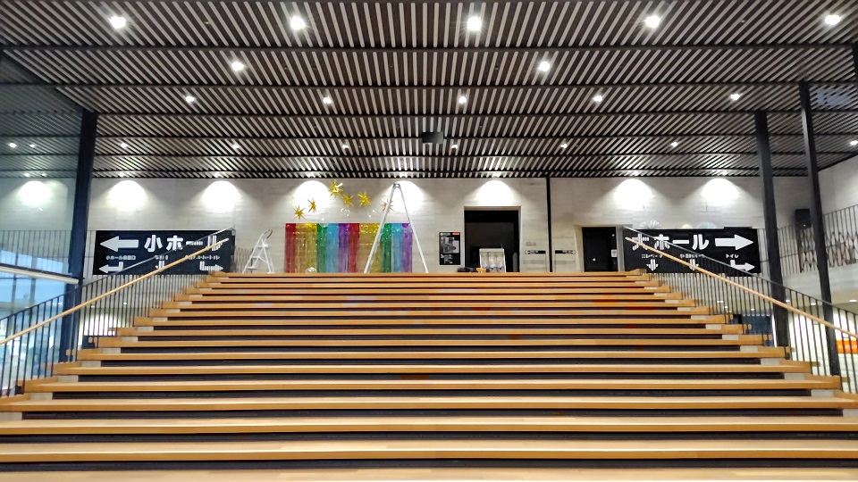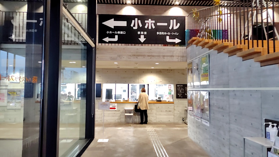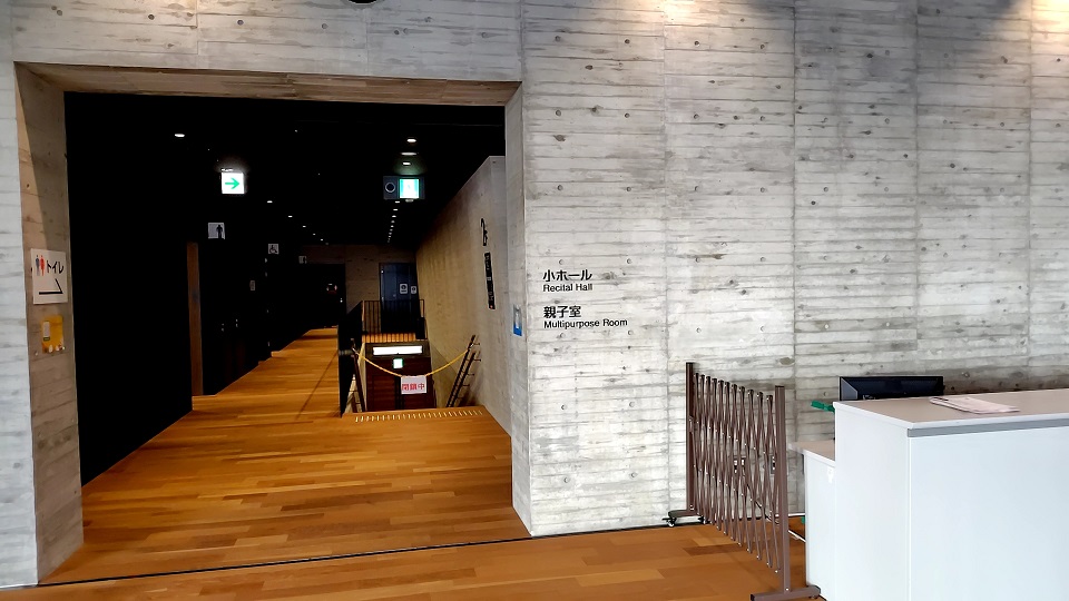 大ホールと小ホールは通路でつながっており、階段を上がって右側が大ホール、左側が小ホールに続いています。