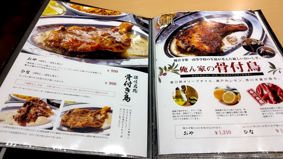 香川でさぬきうどんの次に有名な地元のソウルフードが、この「骨付き鳥」です。しっかりとした歯ごたえの「親どり」と、ふっくらと柔らかい肉質の「若どり(ひな)」の2種類があります。