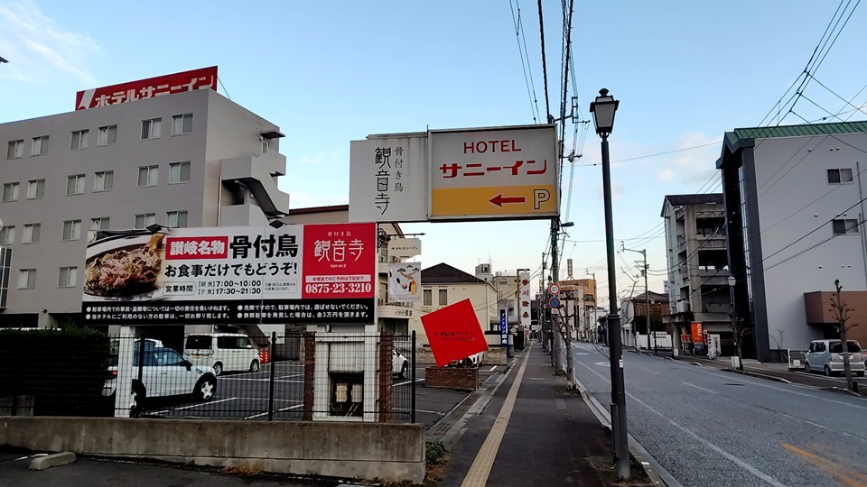 観音寺駅から会場までのアクセスルートで出てきた「ホテルサニーイン」の1階には、ご当地グルメを提供する「骨付き鳥 観音寺」があります。