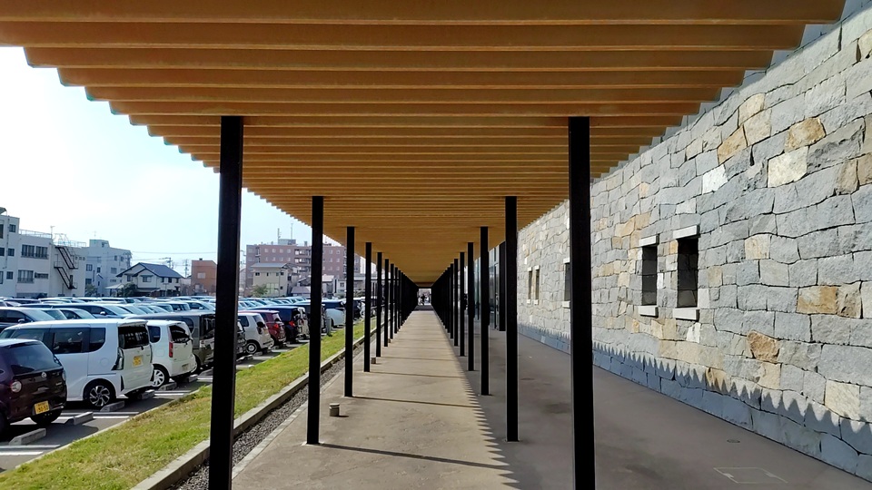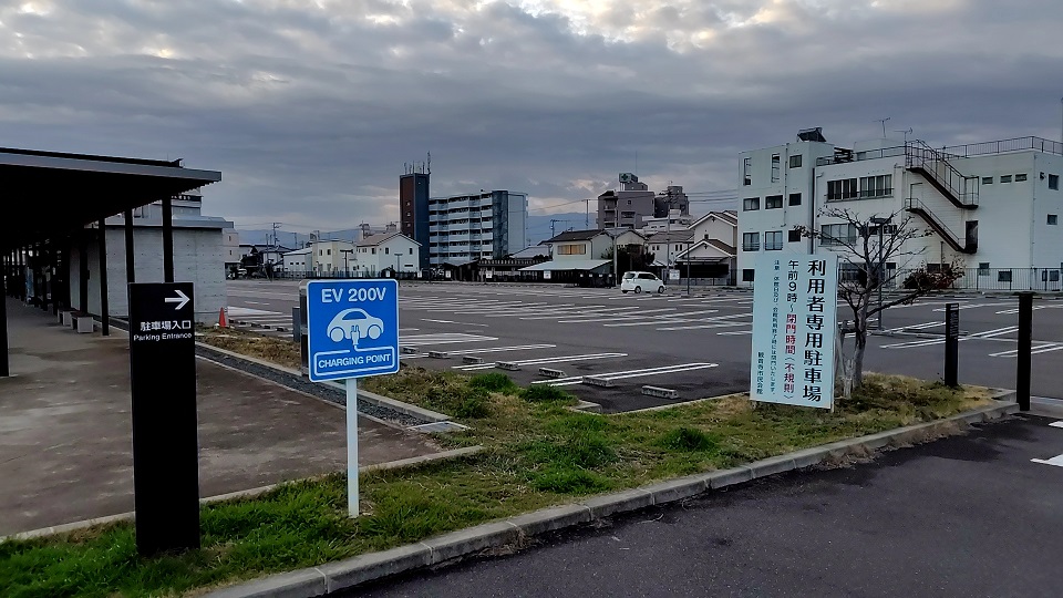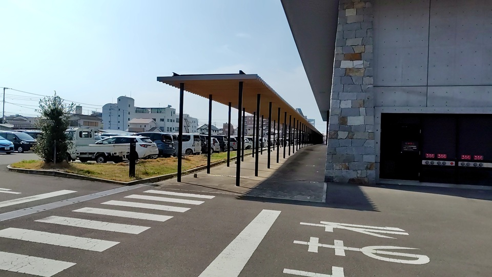 レンタカー等を利用する場合、駐車場は専用駐車場(379台)と隣接する市営駐車場(168台)があり、いずれも無料で利用可能です。