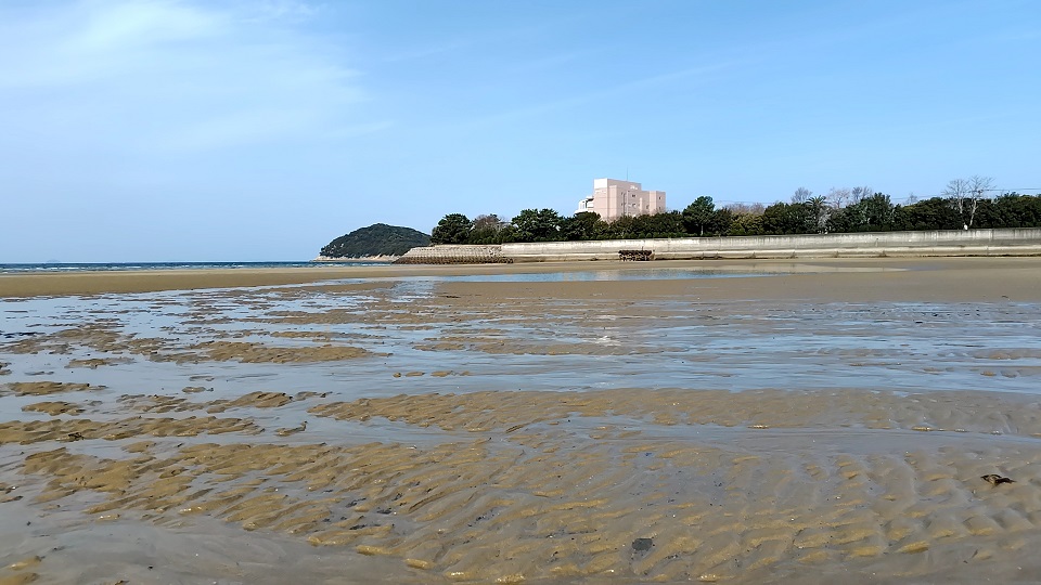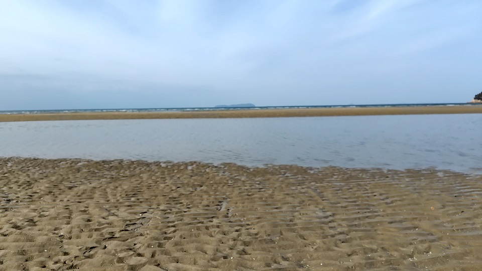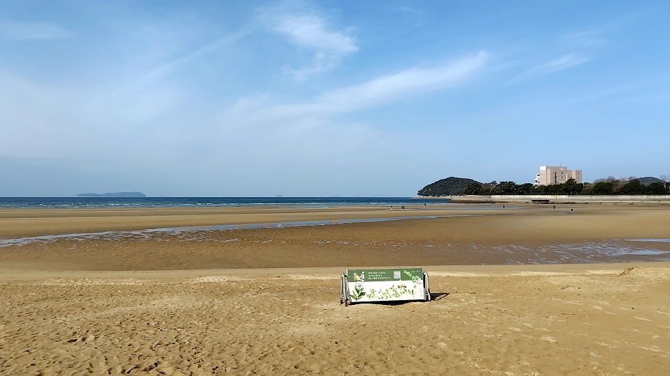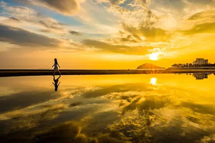 元々は約1kmのビーチが広がる地元の海水浴場ですが、潮が引いた干潮時の夕暮れに、南米ボリビアの「ウユニ塩湖」のような写真が撮れる「映え」スポットとして話題になり、観光名所になっています。
