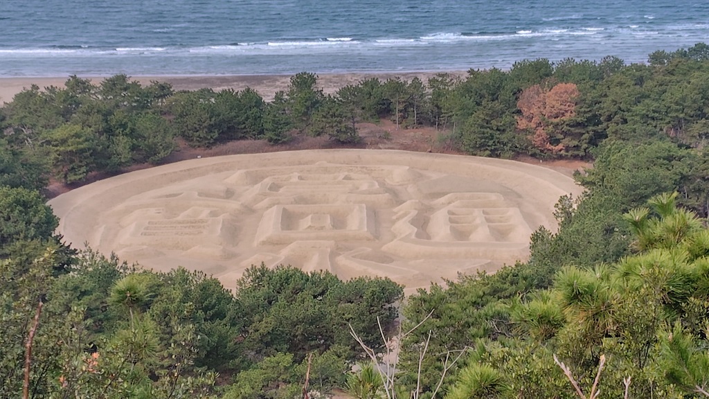 その代表的な名所が、東西122m、南北90m、周囲345mの巨大な砂絵である「銭形砂絵(ぜにがたすなえ)」です。