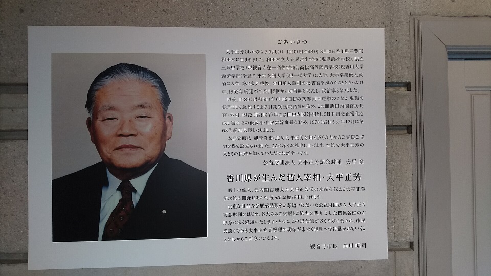 大平氏は1910(明治43)年に香川県三豊郡和田村(現観音寺市)で生まれ、池田勇人元首相の秘書官を経て、政治家となりました。その後、田中角栄内閣では外務大臣として日中国交正常化の歴史的大事業を実現させ、その後も田中・三木両内閣の大蔵大臣として財政運営に挑みました。