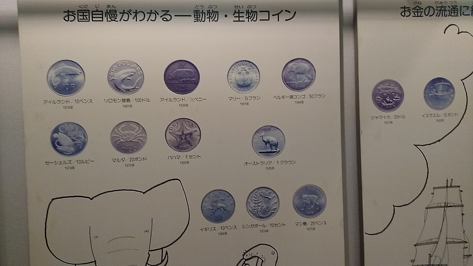 館内には125か国、約2,000点のコインや各国の貨幣、古い貨幣も展示されており、お金の歴史や大切さなどが、イラスト入りの説明等で解説されています。