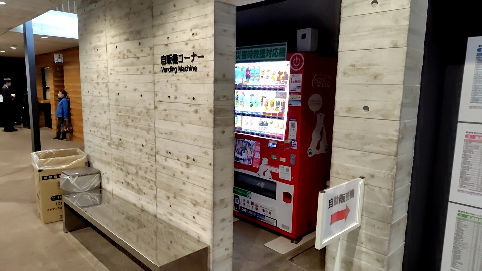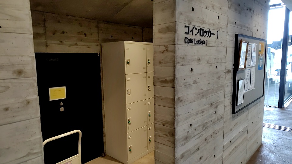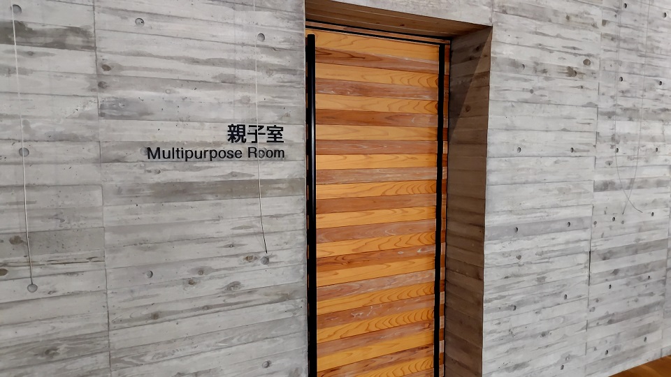 最後列後方の扉を出たところに、親子室と建物2階のメインフロアがあります。