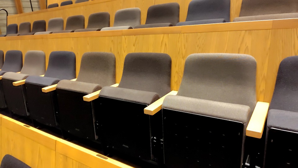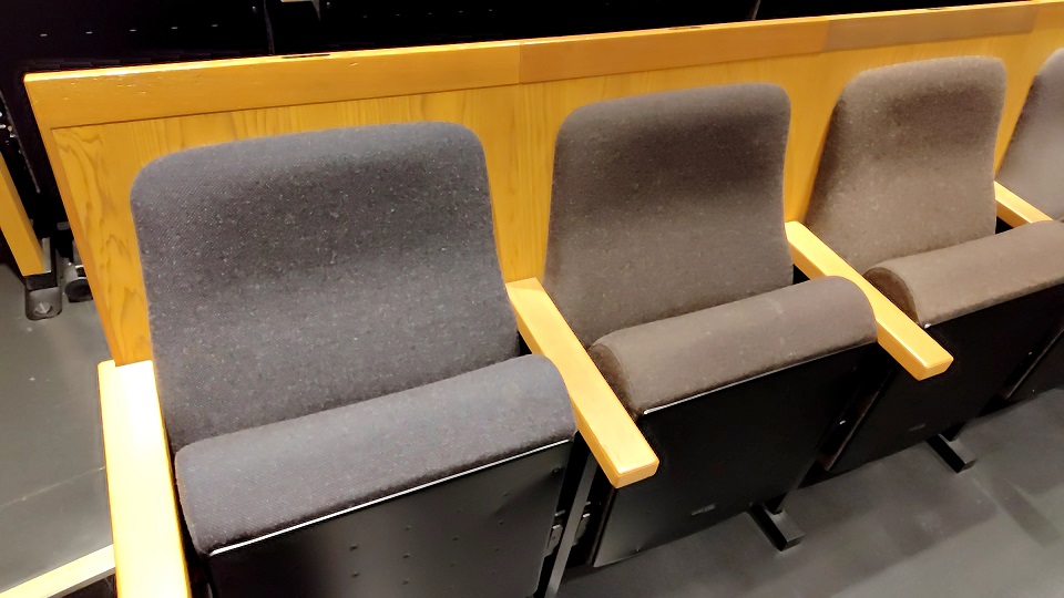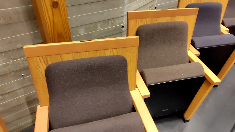 メイン客席部分の背もたれの基礎は、ブロックごとに連なった形式で、隣りの席との境目がないのが特徴です。また、2階席は若干のハイバック仕様になっています。