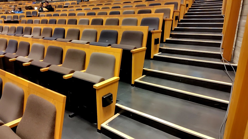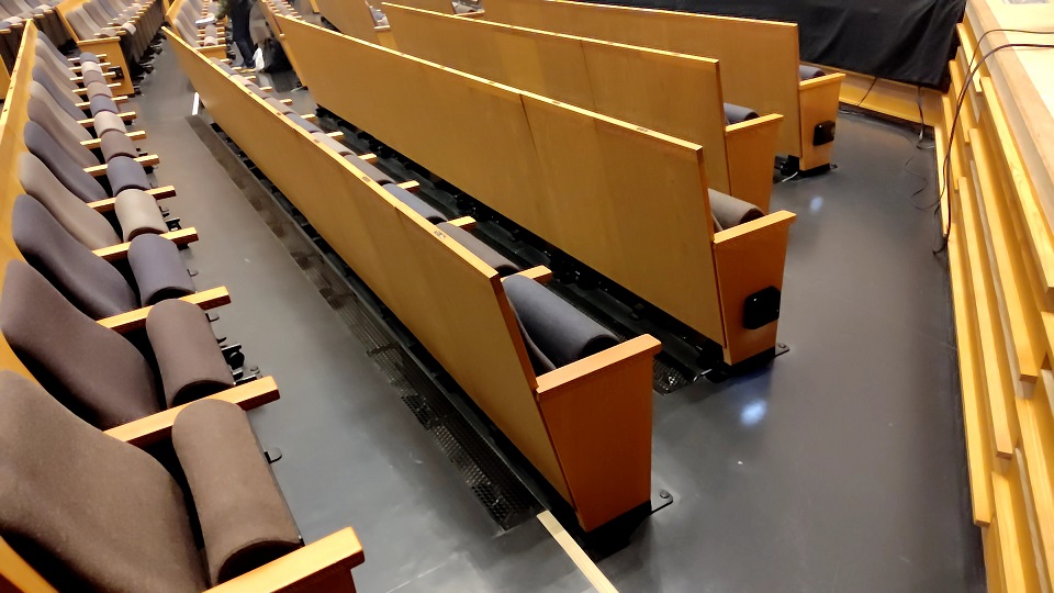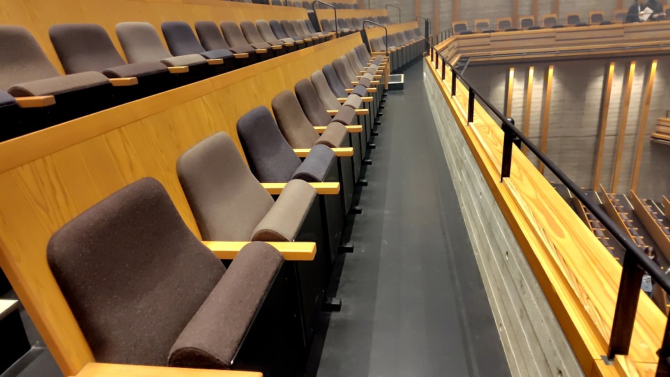 1階席後方は、前方よりも傾斜が付けられており、座席間は段差2段分の高低差があります。