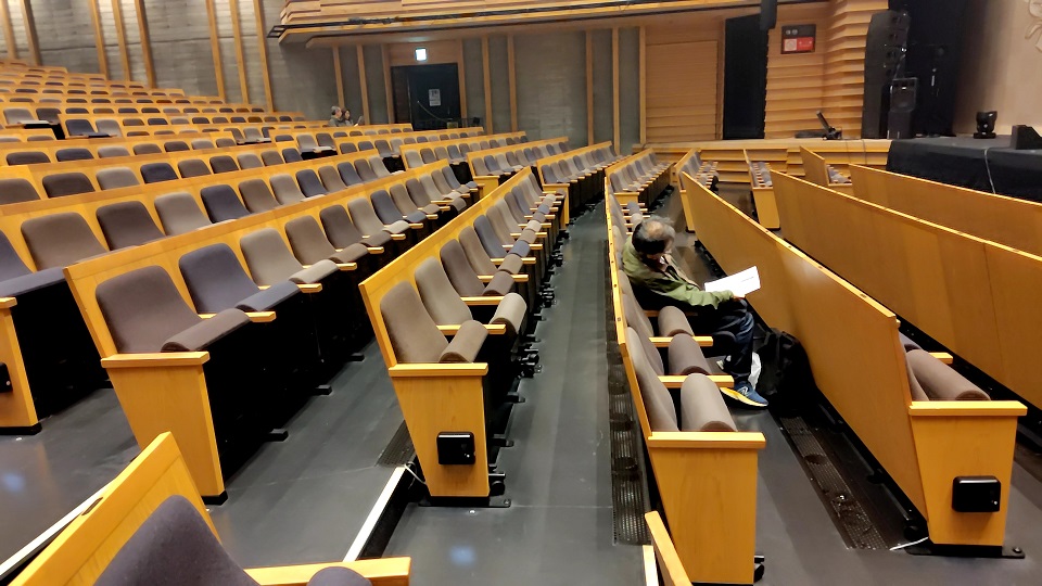 なお、車椅子席は、建物1階と2階の左右の扉付近にあたるI列(9列目)とX列(24列目)の左右両端に計8席分確保されています。
