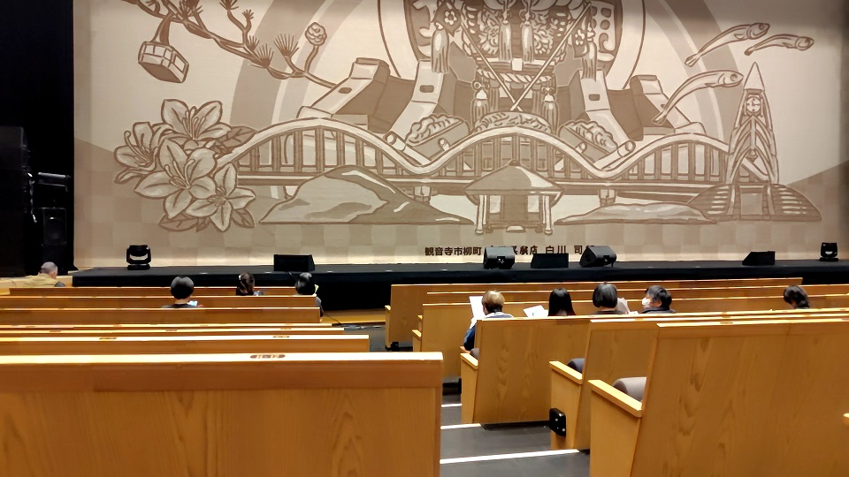 大ホールの総客席数は1,200席で、西讃地区最大の規模を誇ります。1階席と2階席の二層構造です。