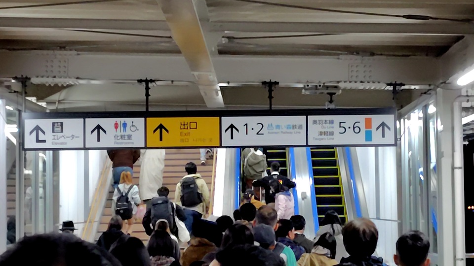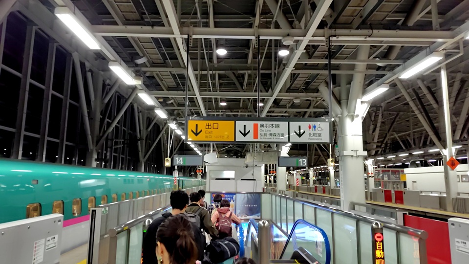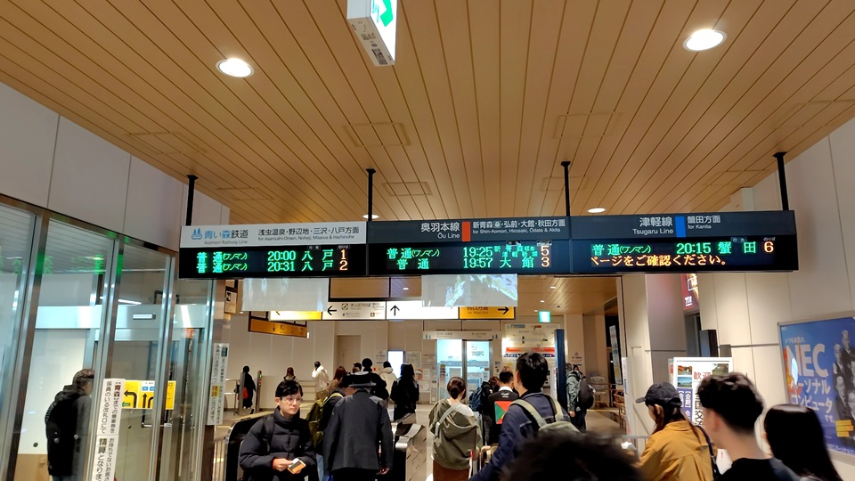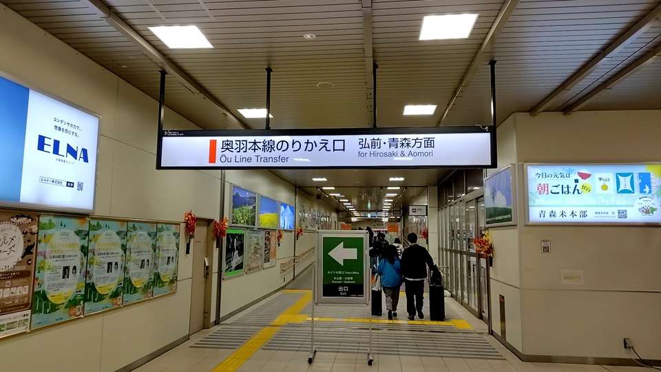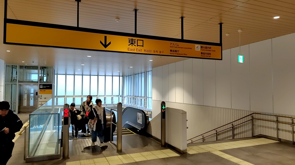 突き当りの案内表示を確認。青森方面の電車は、1番のりばから発車します。