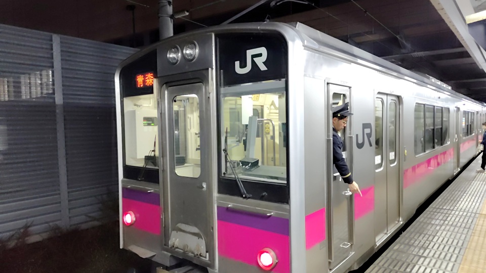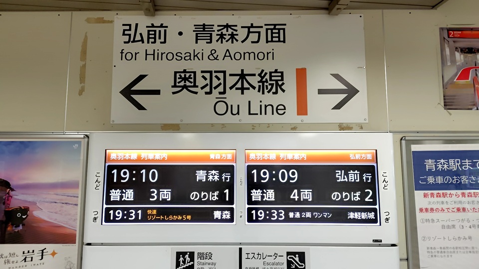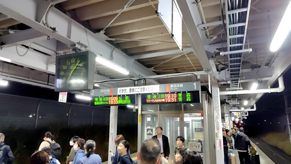 案内のとおり、「奥羽本線」の青森方面の電車に乗車します。